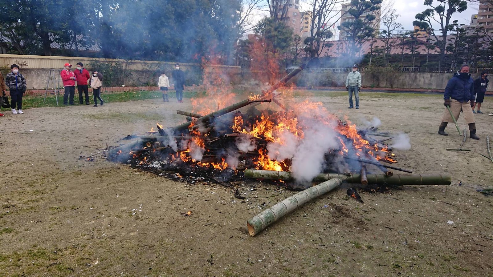令和三年高宮校区どんど焼きを行いました 令和三年1月17日(日曜日)